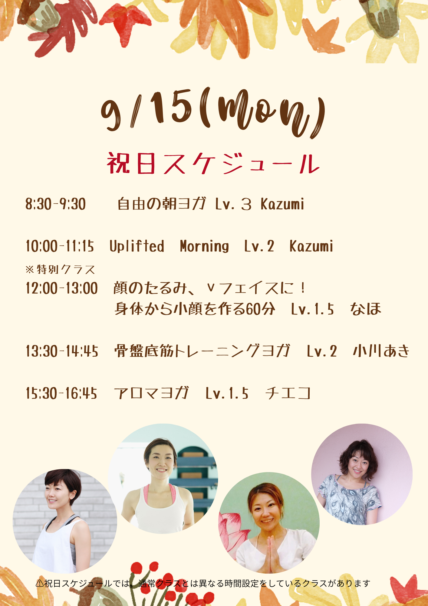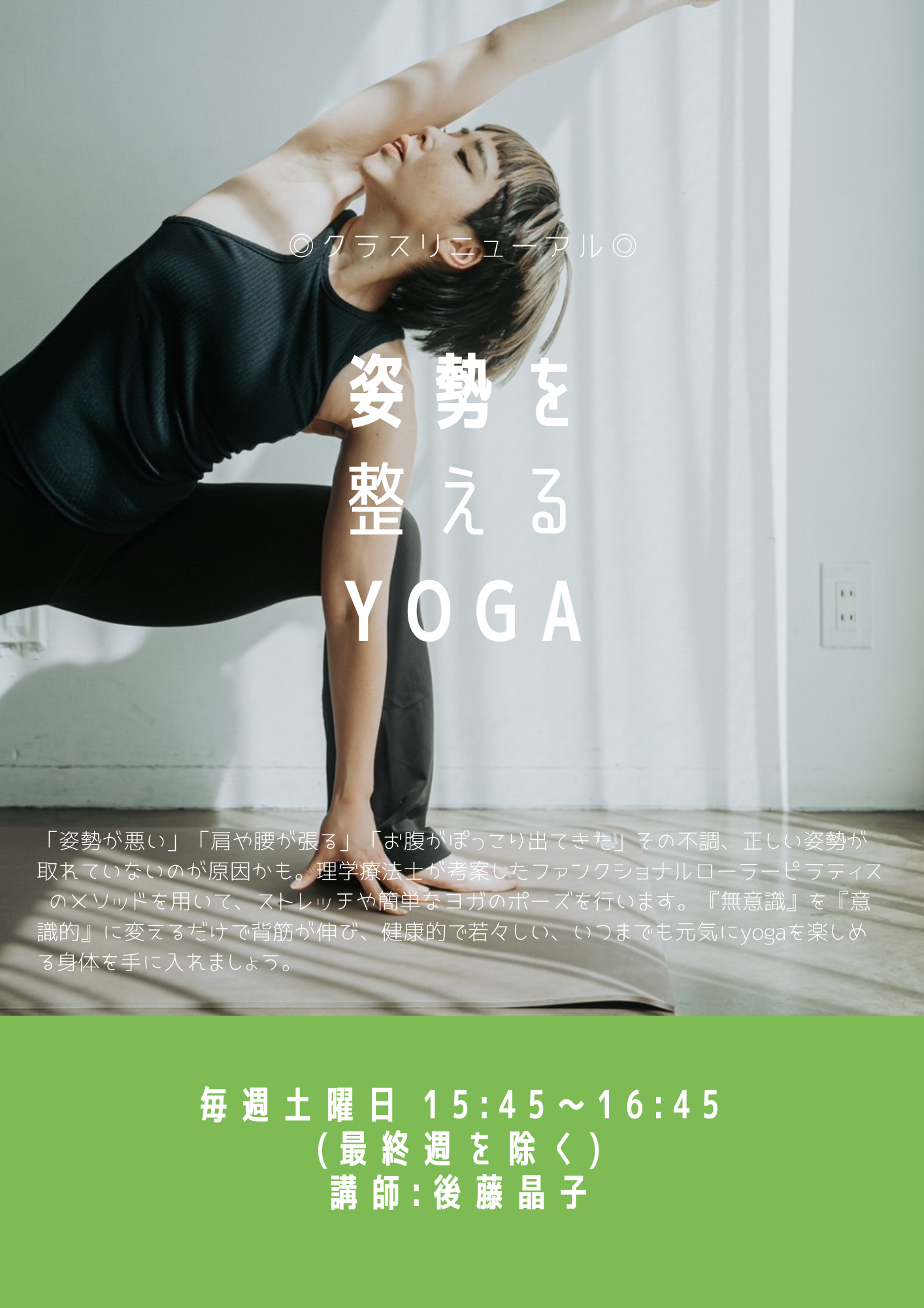 毎週土曜日15:45~16:45 姿勢を整えるヨガlevel2 後藤晶子