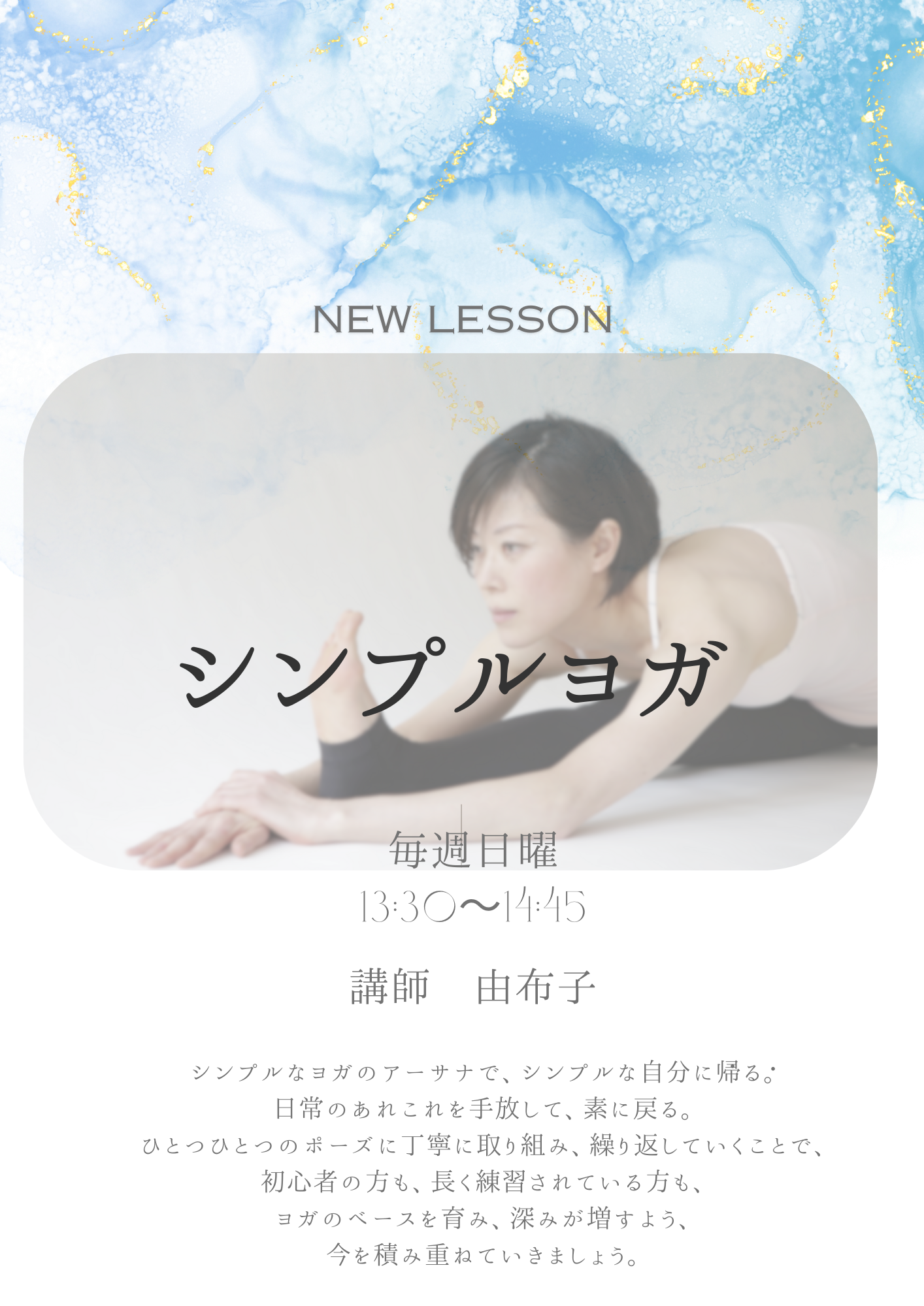 毎週日曜日13:30~14:45 シンプルヨガ level1.5 由布子